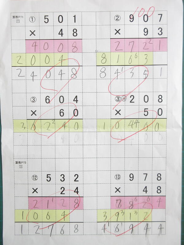 このプリントは好評でした。計算ミスが激減しました。ちょっとした工夫でこんなに変わるんだと実感でき、私もうれしかったです。 (DI)