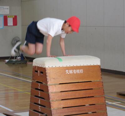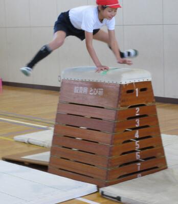 子供たちは、いつも踏切り足が同じになるように、走るストライドを意識して跳びました。慣れてくると、足を素早く動かし、走るリズムをつかんでいきました。