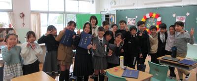 4年生の教室では、自分たちの目標に向かって取り組んだことや、それによって成長したことに「花丸で賞」を担任から贈りました。