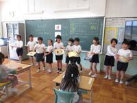 入学式の翌日、2年生が1年生にアサガオの種と一緒に、セカンドブックをプレゼントしました。相和小学校では、PTAより新入生に1人1冊ずつ絵本を贈る活動が受け継がれています。