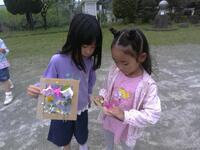 見つけた草花は、テープを貼ってある台紙に貼り付けて、春の草花コレクションを作ることにしました。草花と一緒についてきてしまった蟻を、外に逃がしてあげるという場面もあり、子供たちの優しさが伝わってきました。