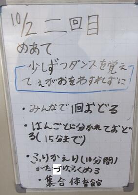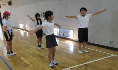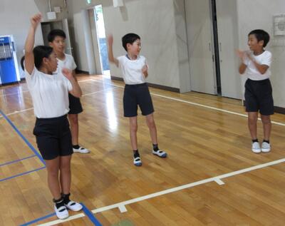 先週は、「親しむ」「覚える」「笑顔」をキーワードに、2時間練習しました。全体で踊ったり、相和っ子班に分かれて行ったりしました。また、曲の速度を、0.5倍速や、0.75倍速にしながら、振りや向き、一連の流れをつかもうとする工夫も見られ、すばらしいと思いました。