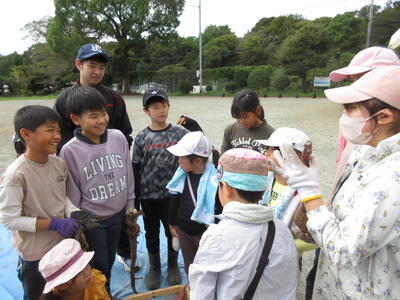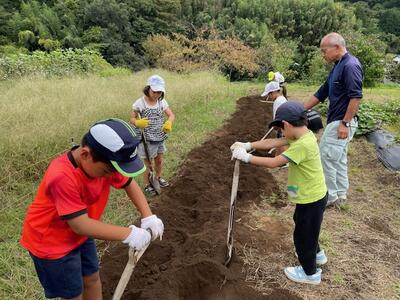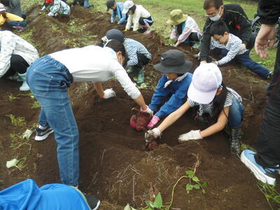 今年の全校サツマイモ栽培も、畑を貸してくださった方や苗をくださった方、畑を耕してくださった方々の支援で行うことができました。本当に感謝しております。
