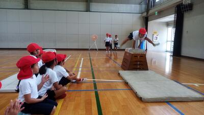 「手はもっとおくだよ!」「両足ジャンプがじょうず!」