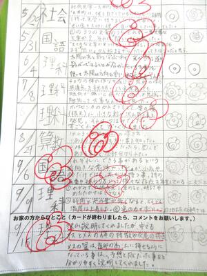 この実践は保護者の方に好評です。 「ノートを取り出して分かりやすく説明してくれます」「学校で勉強していることがよく伝わります」などの感想をカードに書いていただきました。