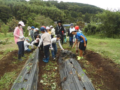 夏野菜の最後の収穫を終え、畑の片付けも終わった2年生。