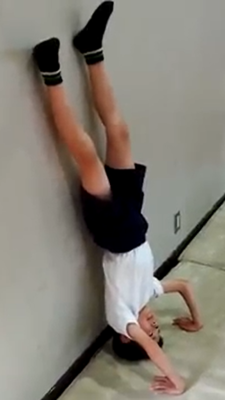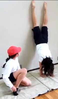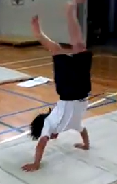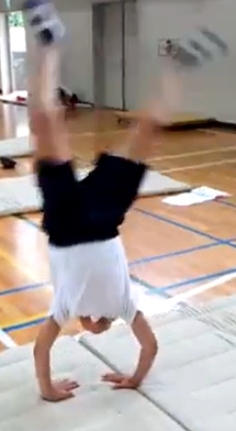 マット運動は、個人で行うものですが、ペアやグループで教え合い、学び合う姿が自然に見られました。速さや勢いをつけること、壁倒立で練習してから倒立を行うこと、手や足の位置やバランス、体の支え方など、声を掛け合うことで技や見栄えの上達につなげることができました。