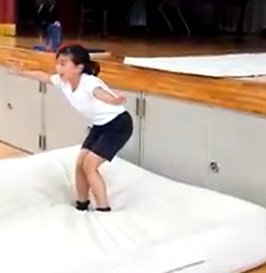 5月の5・6年生は、マット運動に取り組みました。運動には、前転だけでも、前転、開脚前転、補助倒立前転、倒立前転、跳び前転など、いろいろな技があります。授業では、自分に合った技を選ぶこと、また、安定して行ったり繰り返したり組み合わせたりしながら行いました。