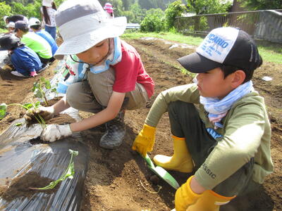 畑での苗植えでは、初めての1年生に上の学年が優しく寄り添います。5年生のHさんは「まっすぐに植えてね」と優しく声を掛けていました。Eさんはみんなの植えた苗がしっかり植えられているか、丁寧にチェックしていました。今年、編成した相和っ子班(ミニ)のチームワークも、素晴らしかったです。