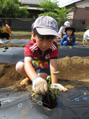 サツマイモの生育だけでなく、子供たち同士の関わり合いについても楽しみです。