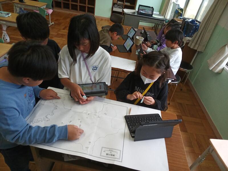 活動の最後に、地図を見てみると、「三浦半島、(かき込みが)すごいいっぱいあるな…」「市街地や山の方は(かき込みが)少ないね。」と気付きがありました。「かききれなかったけど、まだまだあるよ!」というつぶやきもあり、自分たちの住む神奈川県の農業や漁業に興味関心をもつきっかけになったのではないかと思う授業でした。