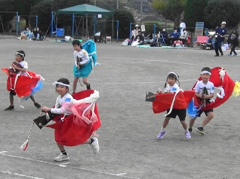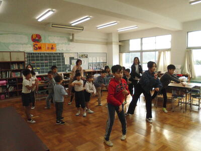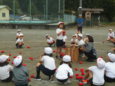 昨日(11月12日(火))の3時間目に、相和幼稚園の子と合同練習を行いました。この日は、11月6日(水)に大まかな流れの把握をした「スマイル玉入れ」と「みんなでつなげ!バトンリレー」を練習しました。