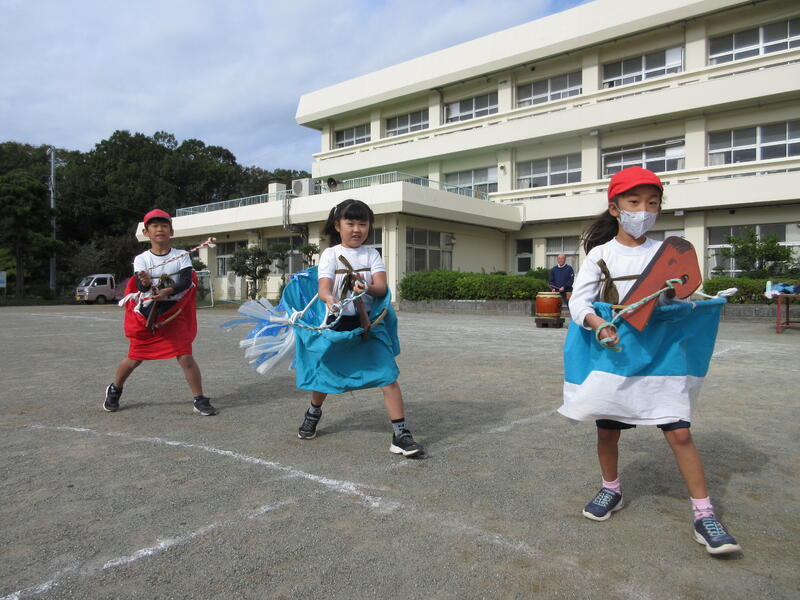 相和ハッピー祭の1~3年の表現種目「荒馬」の練習を初めて運動場で行いました。