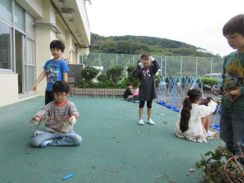 先週は、「わたしの あさがお」の学習をまとめていきました。観察カードをかいたり、さつまいもリースに続いてあさがおリースを作ったりしました。
