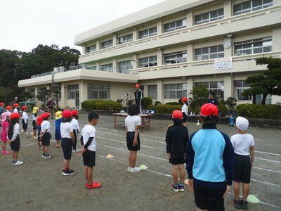11月11日(月)の3時間目に、相和幼稚園の子も加わり、入場行進、ラジオ体操、開会式・閉会式の練習を行いました。