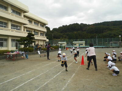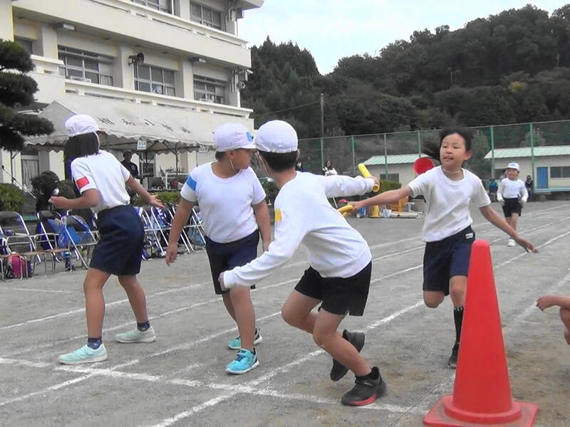 「みんなでつなげ!バトンリレー」では、走順を確認しながら実際に走りました。もらう相手や渡す相手をあまり迷わずに渡すことができていました。