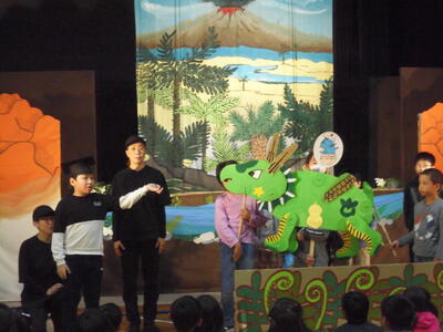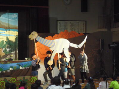4・5・6年生は、事前のワークショップやソウワザウルスの製作、本番で見るだけでなく演じたことなどをとおして、貴重な体験をすることができました。