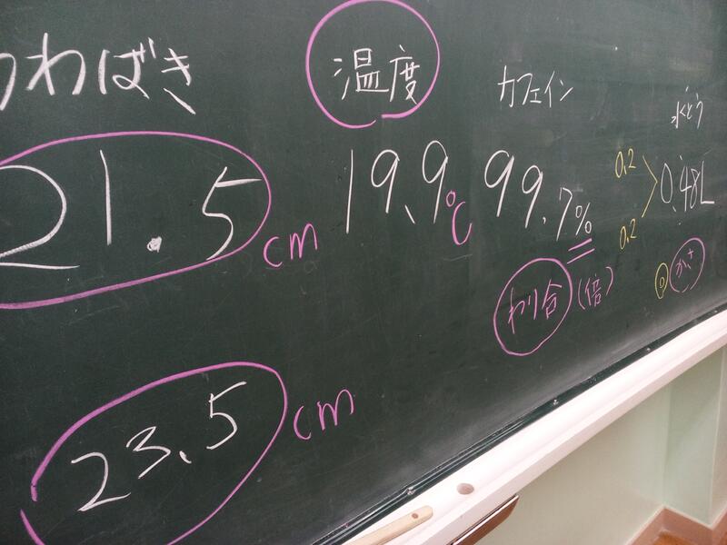 小数の学習に入りました。「小数って見たことある?」と聞くと「ぼくの上履きは21.5㎝!」と元気よく答えるHさん。「では、教室にある小数を探してみよう。」と声を掛けると、子どもたちはいろいろなところから小数を見つけてきました。「温度19.9℃」「水筒0.46ml」「カフェイン99.7%カット・・・」思った以上にたくさんの小数を見つけられました。次回は1Lとはしたの数(1.3L)について学習します。(DI)