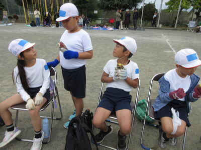 先日、幼小合同種目のバトンリレーの練習をしました。これまで体育の授業で学習したことを生かして取り組むことができました。園児から2年生まではリングのバトン、3年生以上は棒のバトンです。幼稚園の子たちからスタートし、アンカーの6年生まで、みんなの気持ちをしっかりつないで走りました。本番の子どもたちの活躍が楽しみです。(DI)