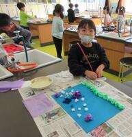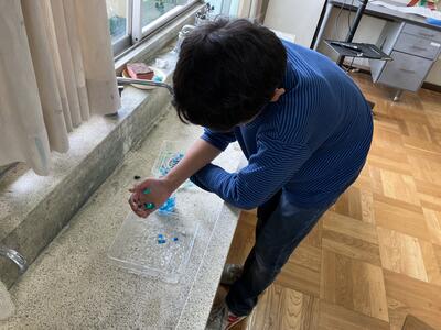 作業を進めていくにつれて、「こんな素材を入れると見え方が変わるのでは?」と自分たちで考え、家から消臭ビーズや光沢のある色紙などを持ってくる子もおり、6人の個性溢れる作品が仕上がりました。