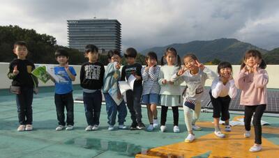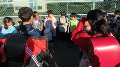 「じっとしていても風車は回るけど、走るともっと早く回る」「高い所に上るともっと回るかな」子どもたちは夢中になって滑り台やジャングルジムの上で調べました。「風車が回る向きはみんな同じかな」「風車を横に向けると、あまり回らない」など、様々な気付きや疑問が出ました。次の学習では、風の強さと風車の関係について考えます。(DI)