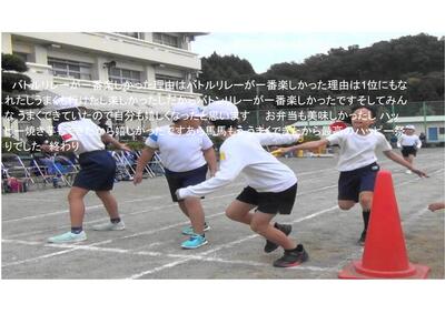 学び合いでは、下級生に対して、傍にいた6年生が書き始めのヒントを分かりやすく教えていました。子どもたちは書くテーマやツールを自分で選んでいました。Hさんは、タブレットのスライドを使って、ハッピー祭の写真を背景に作文を書きました。とても思いのつまった素晴らしい文章でした。