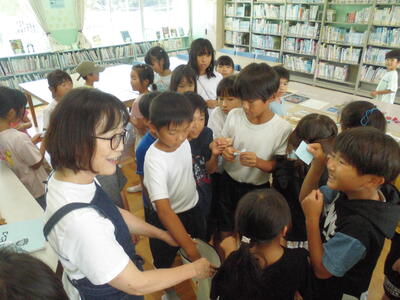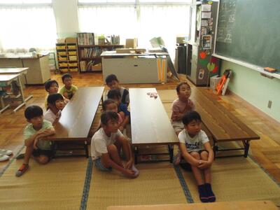 「かあさんのいす」という本と、「日本昔話百選」の中にある「味噌買橋」と話の読み聞かせでした。子供たちは、静かにお話キャンドルの方の読み語りを集中して聞き、作品の世界を味わっていました。