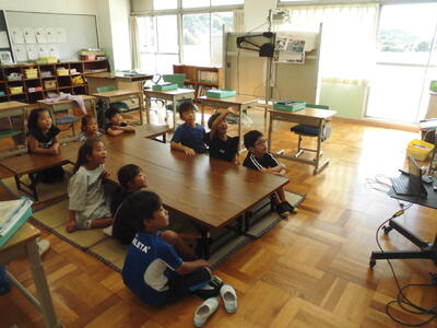 (メダカについて:理科の学びをさらに追究していました。飼育の様子も丁寧に伝えることができました。)