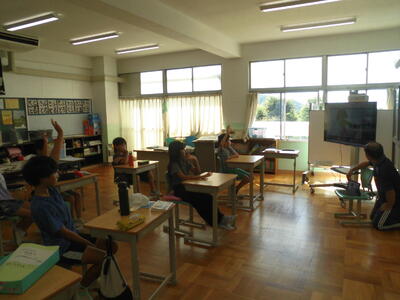 今回は初めて、オンラインで栄養集会を開きました。子供たちは各教室でリラックスした雰囲気でしたが、よく聞いている様子で、クイズにも積極的に参加していました。