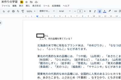 「米作りの学習で、詳しくなりたいことを教えてください。」