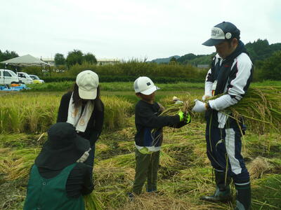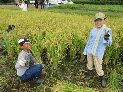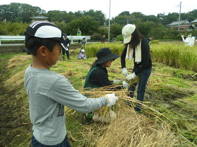 残りの半分の稲刈りも無事に進め、すべての稲を刈り終えることができました。その後は、はさかけや落穂拾いを行い、これらの作業も無事に終えることができました。子供たちは、自らの手で育てた稲を刈ることができた喜びを味わうことができたのではないかと思います。