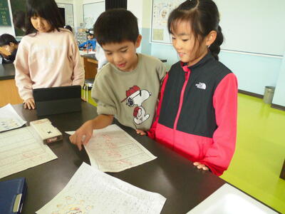 2年生は、国語科で「そうだんにのってください」という話す・聞く単元の学習をしました。「朝寒くて起きられない」「ゲームやタブレットがやめられない」「休み時間に何をするか迷う」など、日頃のお悩みをかいけつする「おなやみかいけつだん」をつくり、みんなで話合いをしました。話し合う時には、「おなやみかいけつだん5かじょう」をもとに、「うめラいス」や相手の気持ちに寄り添って意見を言うことなどを意識して話合いに取り組んでいました。声だけでなく表情や仕草からも相手の気持ちを汲み取ろうと、相手の目を見て話を聞く姿が印象的でした。子供たちは、「相談するとお悩みが解決してスッキリするね」と、相談する意義や喜びを感じていました。