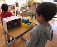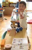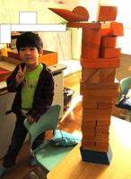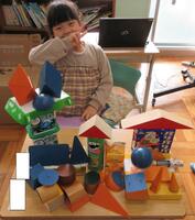 子供たちは、いつも楽しそうです。「あそび」の中で、自然と「さんかく」「しかく」「まる」という言葉が出てきました。また、「ましかく」「ながしかく」という用語も学びました。これからも、日常生活とつながるように、図形に親しんでいきたいと思います。(FN)