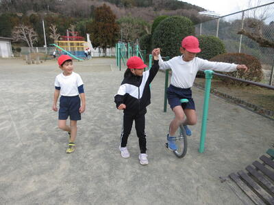 3,4年体育「一輪車に乗れた!」(1月23日)