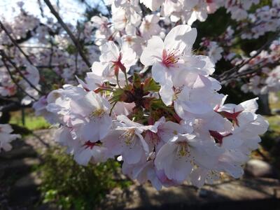 年度末の大雨から変わって、暖かな日の光に春を感じられる今日。学校のシンボルでもあるクスノキの近くの桜も満開を迎えています。